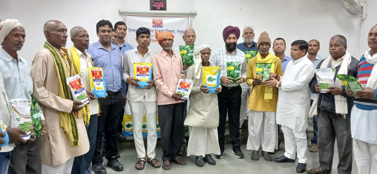 आदित्य बिड़ला रुरल टेक्नोलॉजी पार्क म्योरपुर में आयोजित किसान प्रशिक्षण कार्यक्रम के दौरान दुद्वी तहसील के म्योरपुर, बभनी व दुद्वी ब्लॉक के किसानों को नगदी फसल पैदावार बढाने तथा उससे होने वाली आमदनी में वृद्धि हेतु प्याज, चना, मटर, टमाटर, फूलगोभी, मिर्च, बैंगन, पता गोभी, मूली, पालक, धनिया इत्यादि के उन्नत किस्म के बीज वितरित किया गये। सब्जी की खेती हेतु हिण्डाल्को द्वारा क्षेत्र के 73 गांव से कुल 496 किसानों को लाभान्वित किया गया जिससे लगभग 225 एकड़ कृषि भूमि पर सब्जी का उत्पादन सुनिश्चित होगी।