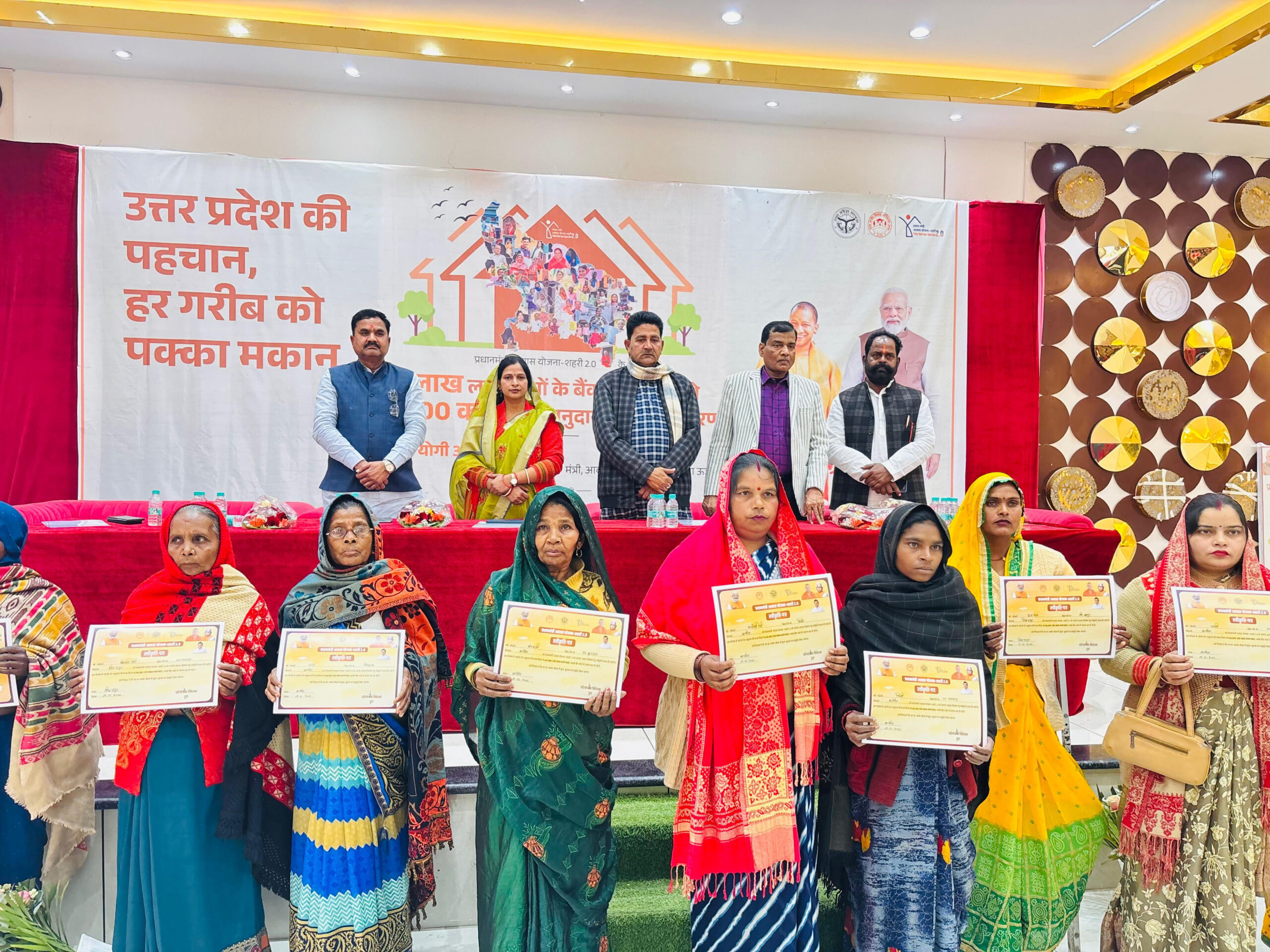 जनप्रतिनिधियों ने प्रधानमंत्री आवास योजना-शहरी के लाभार्थी लक्ष्मी, क्षेमकली, शिल्पी, बसन्ती, रम्पा, गायत्री, सन्तोषी देवी, पूजा पाल, नेमा देवी तथा कैलाशी देवी को प्रमाण पत्र वितरित कर सम्मानित किया।