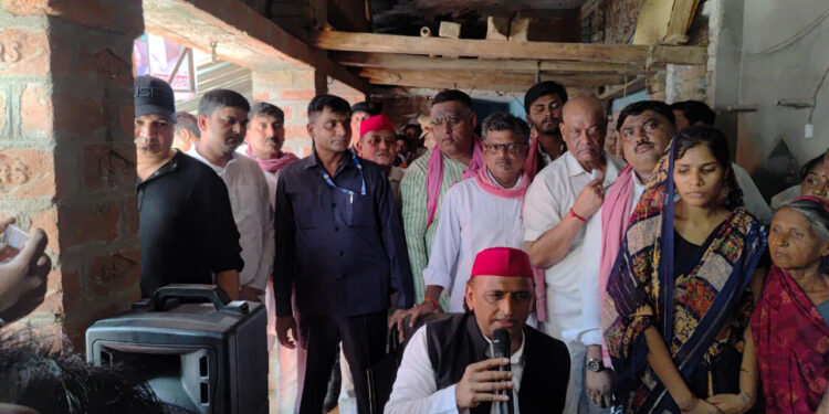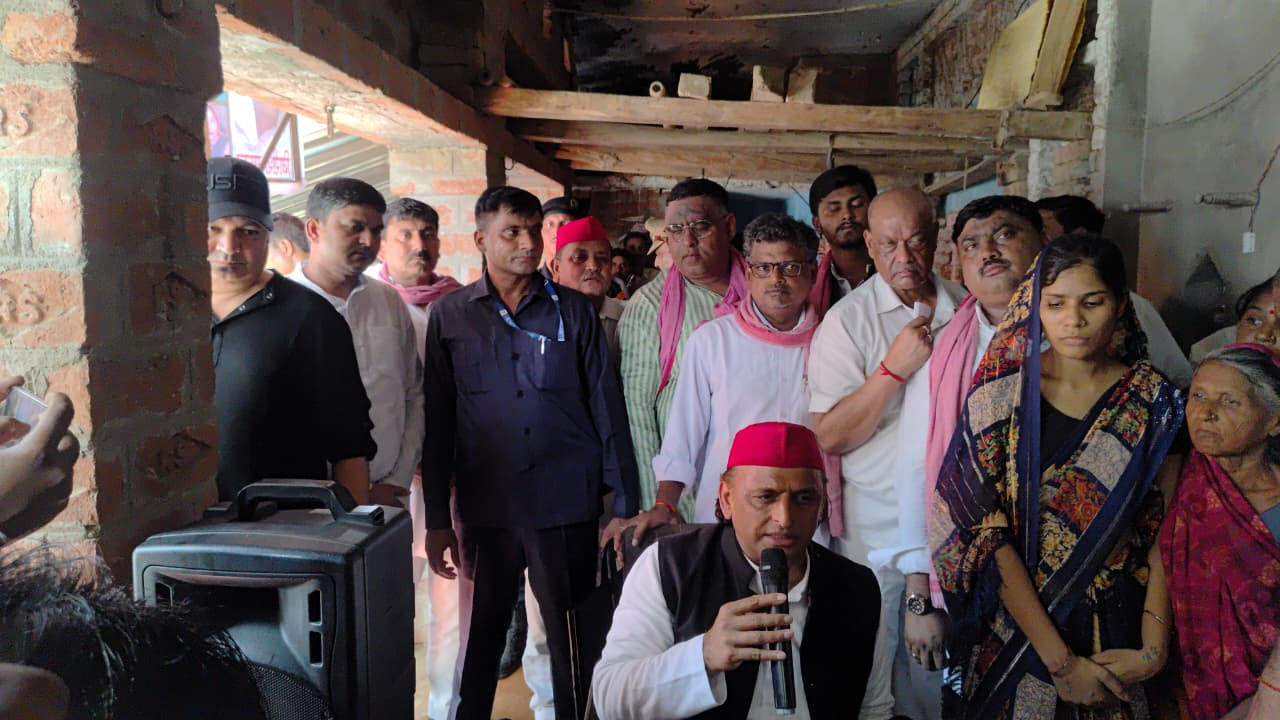 कन्नौज पहुंचे अखिलेश, करंट से मरने वाले बृजेश के परिवार को दी सहायता