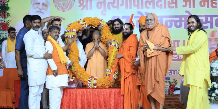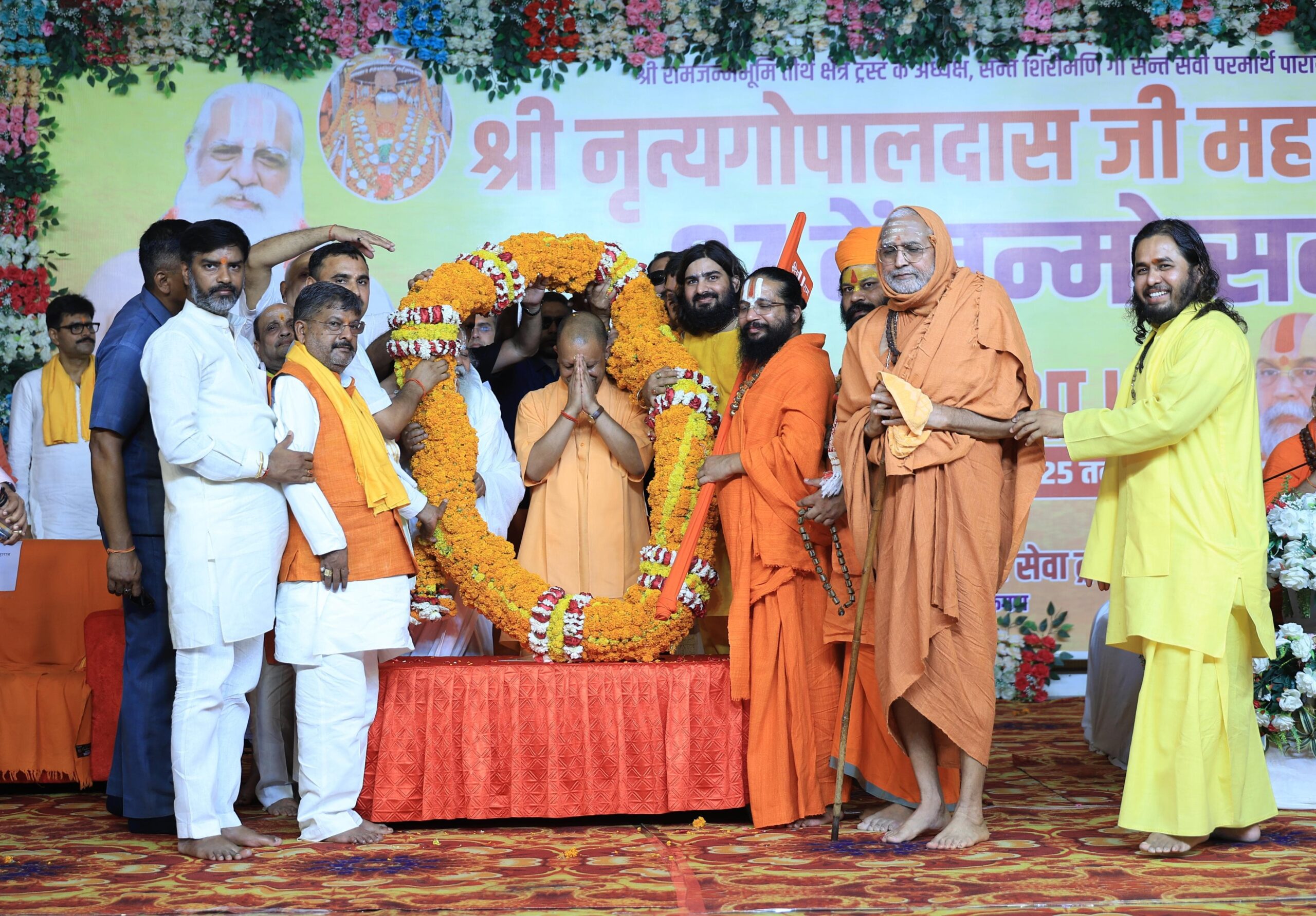*अयोध्या, (BNE) मुख्यमंत्री योगी आदित्यनाथ ने गुरुवार को श्रीराम जन्मभूमि तीर्थ क्षेत्र ट्रस्ट के अध्यक्ष और मणिरामदास छावनी के महंत नृत्यगोपाल दास जी महाराज के 87वें जन्मदिन के अवसर पर आयोजित समारोह में भाग लिया। इस दौरान उन्होंने अयोध्या के सांस्कृतिक, आध्यात्मिक और पर्यावरणीय महत्व पर प्रकाश डाला। उन्होंने कहा कि सनातन धर्म की मजबूत नींव पर प्रधानमंत्री नरेन्द्र मोदी के नेतृत्व में विकसित भारत का संकल्प साकार हो रहा है। डबल इंजन की सरकार के प्रयासों से अयोध्या में त्रेतायुगीन वैभव की वापसी हो रही है। मुख्यमंत्री ने अपने संबोधन में कहा कि आज का दिन अत्यंत अभिभूत करने वाला और आनंदमयी है। यह मेरा सौभाग्य है कि मुझे पूज्य महंत नृत्यगोपाल दास जी के जन्मदिवस समारोह में शामिल होने का अवसर प्राप्त हुआ। मैं उनके दीर्घायु और स्वस्थ जीवन की कामना करता हूं। उन्होंने कहा कि पूज्य संतों की दिव्य साधना और आशीर्वाद के कारण ही भारत नए भारत के रूप में आगे बढ़ रहा है। प्रधानमंत्री नरेन्द्र मोदी बिना रुके और डिगे विकसित भारत के संकल्प को साकार करने में जुटे हैं।