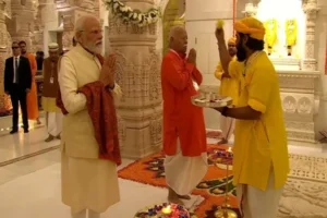 अयोध्या-प्रधानमंत्री मोदी और मोहन भागवत ने की राम दरबार में पूजा