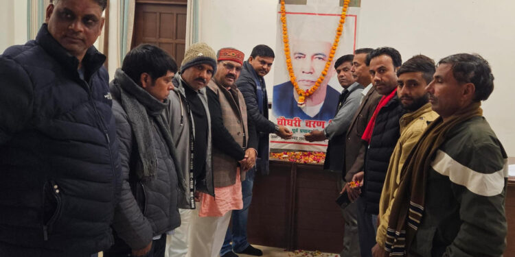 कन्नौज। आज समाजवादी पार्टी कार्यालय पर भारत रत्न, देश के पूर्व प्रधानमंत्री, किसानों, मजदूरों, पिछड़ों, दलितों, के मसीहा, गाँव, गरीब की आवाज पूर्व प्रधानमंत्री स्वर्गीय चौधरी चरण सिंह की जयंती ‘किसान दिवस’ के रूप में सपा जिलाध्यक्ष मोहम्मद कलीम खान के नेतृत्व में आयोजित किया गया इस अवसर पर  समाजवादी पार्टी के वरिष्ठ नेताओं, पदाधिकारियों, कार्यकर्ताओं ने चौधरी चरण सिंह के चित्र पर पुष्प अर्पित करके अपने श्रद्धा सुमन अर्पित किए और उन्हें नमन किया।