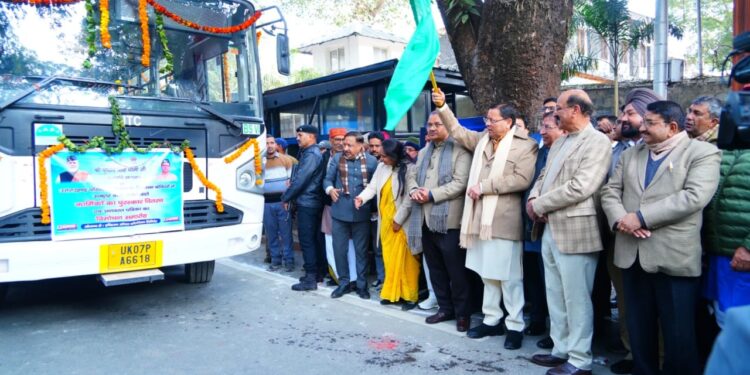 नववर्ष के अवसर पर मुख्यमंत्री पुष्कर सिंह धामी ने उत्तराखंड परिवहन निगम के बेड़े में 100 नई बसें शामिल की गई है। मुख्यमंत्री कैम्प कार्यालय से पसे फ्लैग ऑफ किया। इस अवसर पर मुख्यमंत्री ने 10 ए.सी. एवं 2 स्लीपर अनुबंधित बसों को भी जनता को समर्पित किया। साथ ही उन्होंने परिवहन निगम की स्मारिका “अनवरत” एवं सड़क सुरक्षा पर आधारित कैलेंडर का विमोचन किया तथा कठिन परिस्थितियों में कर्तव्यनिष्ठा और ईमानदारी से कार्य करने वाले कर्मठ कर्मचारियों को सम्मानित किया।