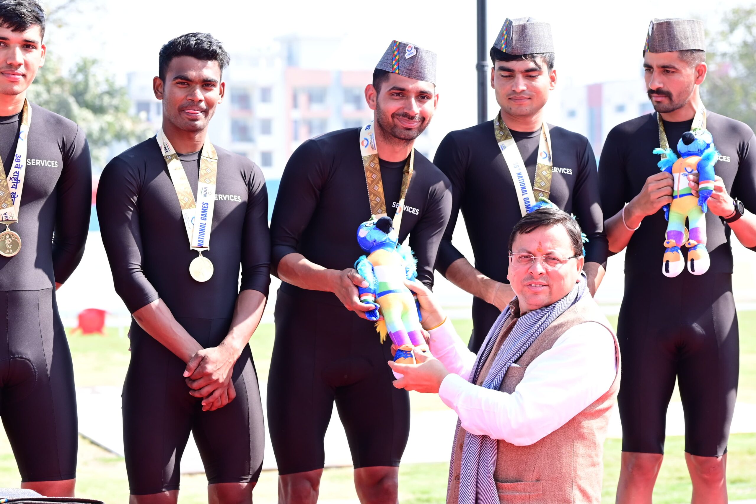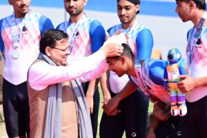 DEHRADUN:मुख्यमंत्री ने साइकिलिंग पदक विजेताओं को मेडल प्रदान कर शुभकामनाएं दी