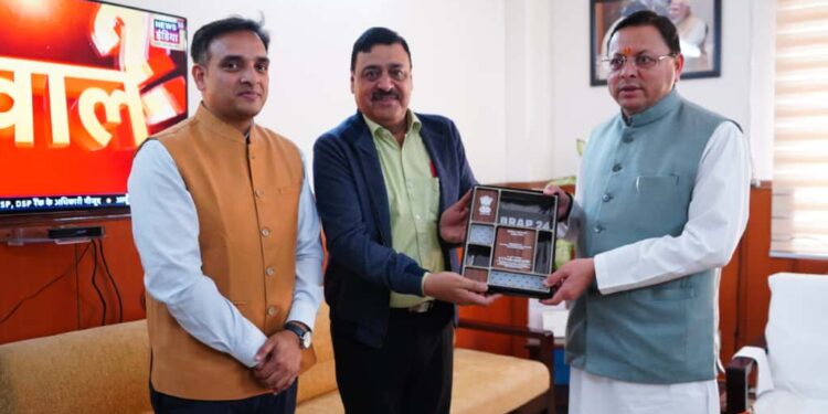 मुख्यमंत्री पुष्कर सिंह धामी को बुधवार को सचिवालय में सचिव उद्योग विनय शंकर पाण्डेय ने प्रदेश को राष्ट्रीय स्तर पर व्यापार सुधार कार्य योजना 2024 के तहत पांच प्रमुख सुधार श्रेणियों में प्रदेश को प्राप्त टॉप अचीवर्स पुरस्कार भेंट किया।