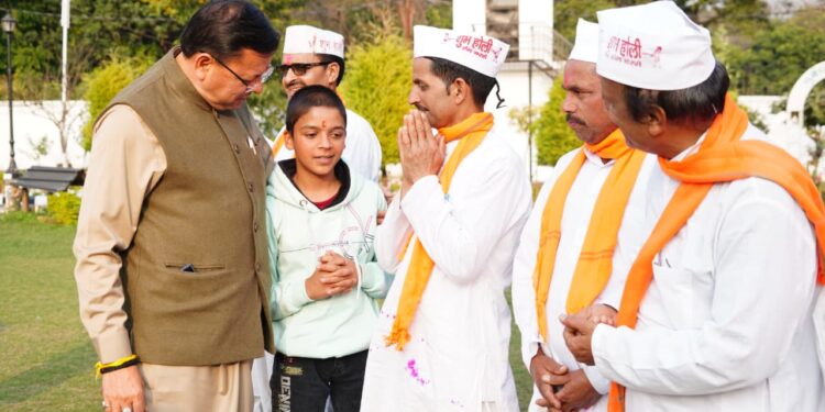 मुख्यमंत्री पुष्कर सिंह धामी को मुख्यमंत्री आवास में चम्पावत से आए होल्यारों ने दी होली की शुभकामनाएं