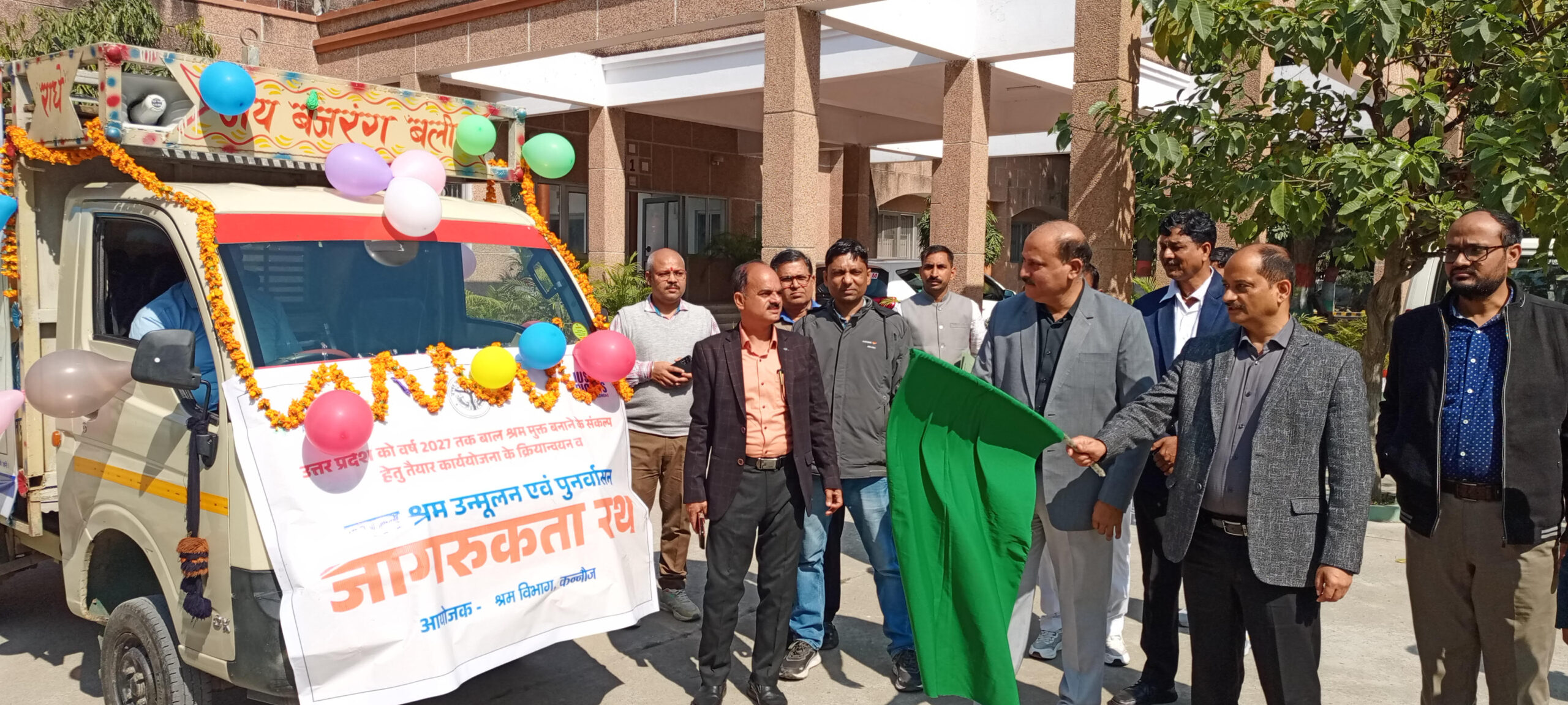 कन्नौज। जनपद को 2026 तक बाल श्रम मुक्त कराने के उद्देश्य से जिलाधिकारी ने कलेक्ट्रेट परिसर से बाल श्रम जनजागरण रथ यात्रा को हरी झंडी दिखाकर रवाना किया। इस अवसर पर जिलाधिकारी आशुतोष मोहन अग्निहोत्री ने कहा कि बाल श्रम समाप्त करने के लिए सभी बच्च्चों का स्कूल में ठहराव सुनिश्चित करना होगा। उन्होंने कहा कि जनपद को बाल श्रम मुक्त बनाने के रणनीति बनाकर कार्य करना होगा।