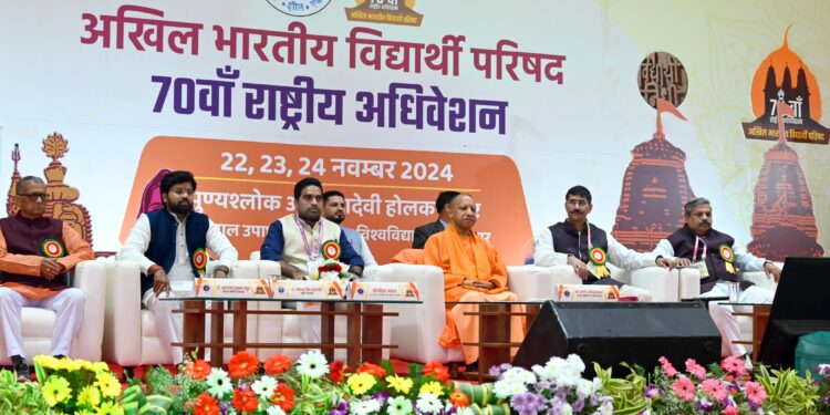 सीएम योगी रविवार को अखिल भारतीय विद्यार्थी परिषद के तीन दिवसीय 70वें राष्ट्रीय अधिवेशन के समापन दिवस पर एक विशेष सत्र को संबोधित कर रहे थे। इस अवसर पर उन्होंने ट्रेनिंग एंड एजुकेशनल सेंटर फॉर हियरिंग इम्पेयर्ड (टीच) ठाणे, मुंबई के सह संस्थापक दीपेश नायर को प्रोफेसर यशवंतराव केलकर युवा पुरस्कार से सम्मानित किया। दीनदयाल उपाध्याय गोरखपुर विश्वविद्यालय परिसर में आयोजित अधिवेशन में मुख्यमंत्री ने अखिल भारतीय विद्यार्थी परिषद के सूत्र वाक्य ज्ञान, शील, एकता का उल्लेख करते हुए कहा जाता ज्ञानवान बनने के लिए दुनिया में भारत से बड़ा आग्रही कोई और देश नहीं है। गीता में भी कहा गया है, ‘न हि ज्ञानेन सदृशं पवित्रमिह विद्यते’ अर्थात ज्ञान के समान पवित्र करनेवाला, शुद्ध करनेवाला इस लोक में दूसरा कोई नहीं है। ज्ञानवान होने के लिए यहां ज्ञानवाहक ऋषि परंपरा का सम्मान रहा है।
