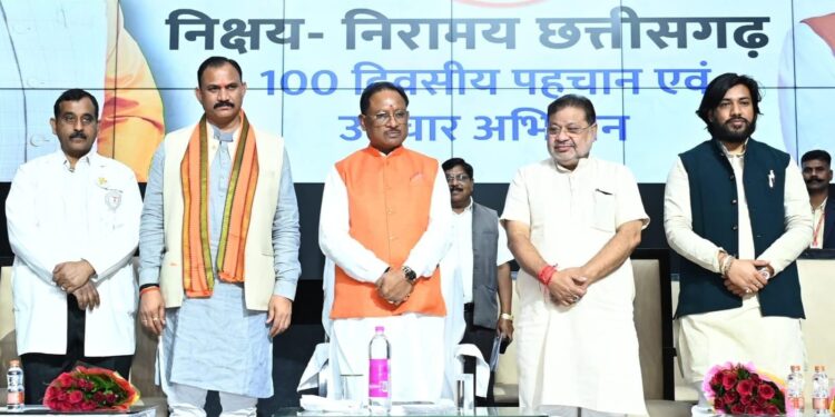 रायपुर (BNE)मुख्यमंत्री विष्णुदेव साय ने रायपुर के एम्स आडिटोरियम में रिमोट का बटन दबाकर 100 दिनों तक चलने वाले राज्य स्तरीय निक्षय निरामय छत्तीसगढ़ अभियान की शुरूआत की। इस अवसर पर मुख्यमंत्री विष्णुदेव साय ने रिमोट का बटन दबाकर निक्षय पोषण योजना के अंतर्गत हितग्राहियों को प्रतिमाह दी जाने वाली 1 हजार रूपए की राशि के आनलाइन ट्रांसफर करने की भी शुरूआत की। मुख्यमंत्री ने इस अवसर पर उपस्थित सभी लोगों को निक्षय निरामय की शपथ भी दिलाई। निक्षय निरामय छत्तीसगढ़ कार्यक्रम के अंतर्गत अगले 100 दिनों तक राज्य में टीबी, कुष्ठ और मलेरिया के मरीजों की पहचान की जाएगी और उनका उपचार सुनिश्चित किया जाएगा। योजना में राज्य के वृद्धजनों का भी स्वास्थ्य जांच और उपचार शामिल है।