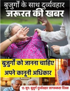 विश्व बुजुर्ग दुर्व्यवहार जागरूकता दिवस 15 जून 2025 -बुजुर्गों के साथ भावनात्मक ,भौतिक,वित्तीय,परित्याग उपेक्षा रूपी भयंकर दुर्व्यवहार को रेखांकित करना ज़रूरी