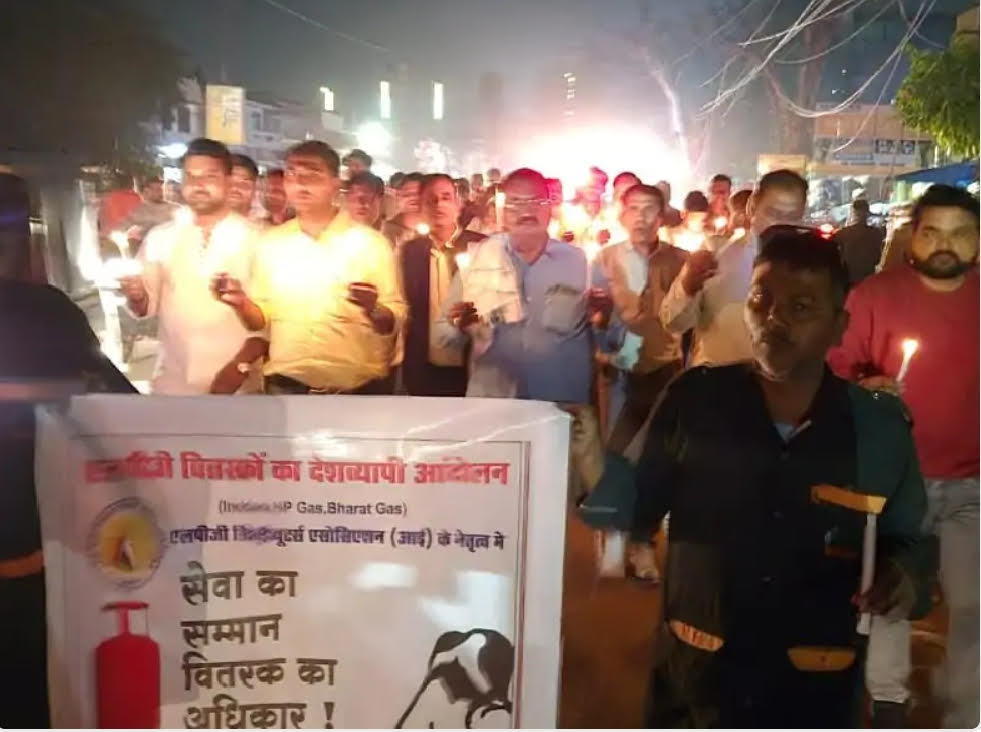 कन्नौज: एलपीजी वितरकों ने सेवा दर बढ़ाने के लिए निकाला कैंडल मार्च