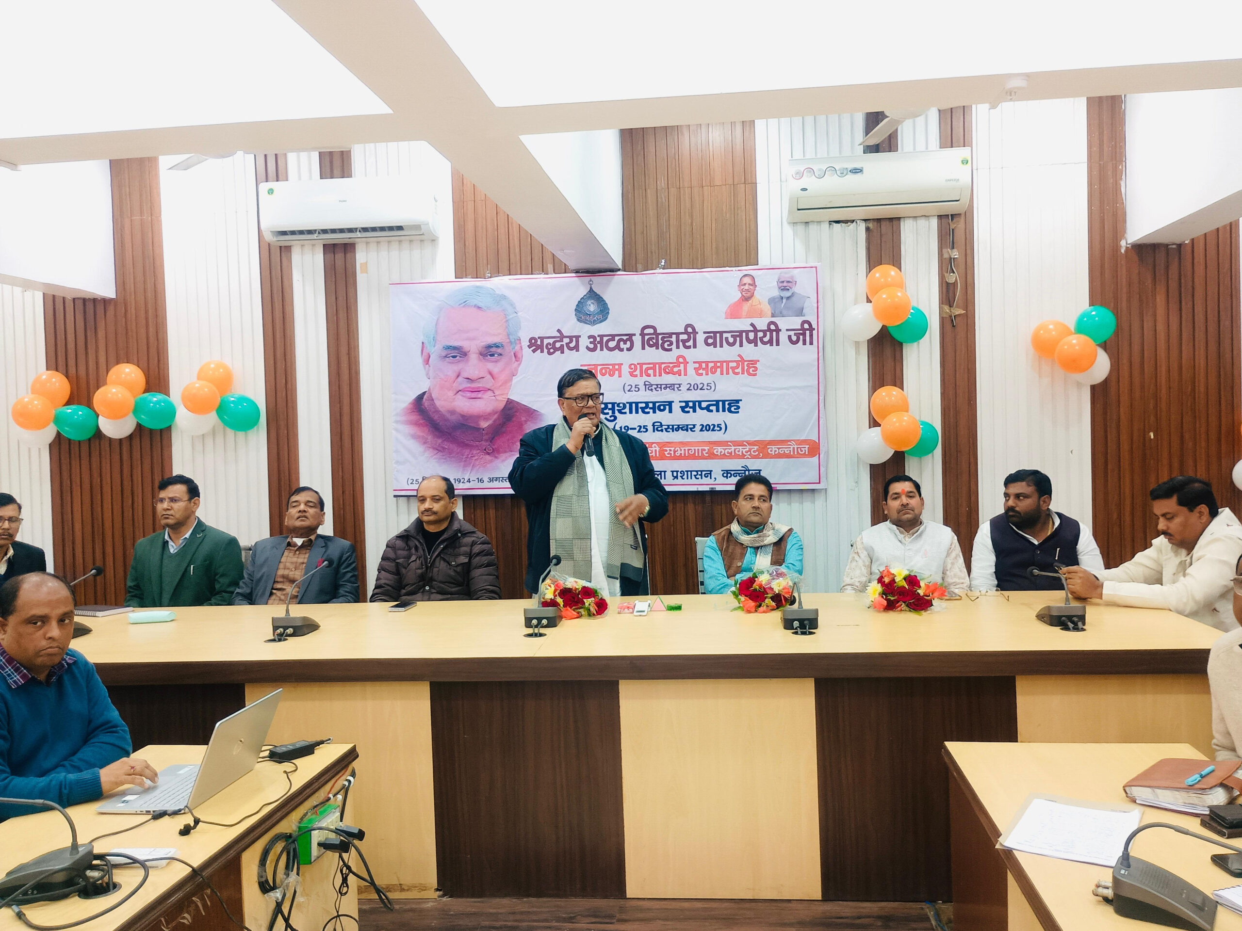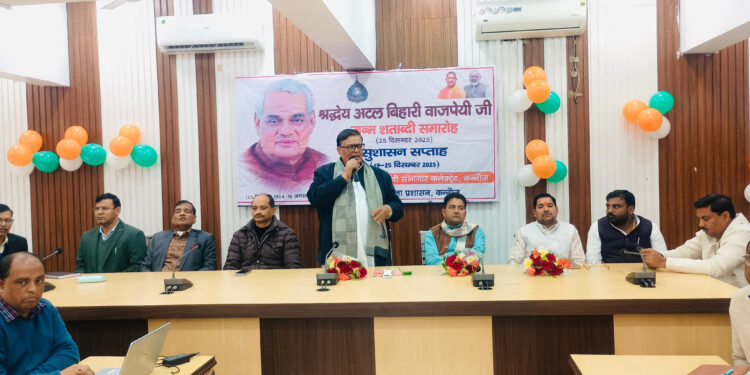 कन्नौज। पूर्व प्रधानमंत्री भारत रत्न स्व0 अटल विहारी बाजपेयी की जंयती ‘‘सुशासन दिवस’’ के रूप में मनायी गई। प्रधानमंत्री नरेंद्र मोदी के उद्बोधन का सीधा प्रसारण जनपद स्तर पर आयोजित कार्यक्रम में पूर्व सांसद, विधायक तिर्वा, जिलाधिकारी, जिलाध्यक्ष भाजपा की उपस्थिति में देखा व सुना गया।