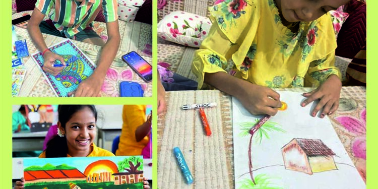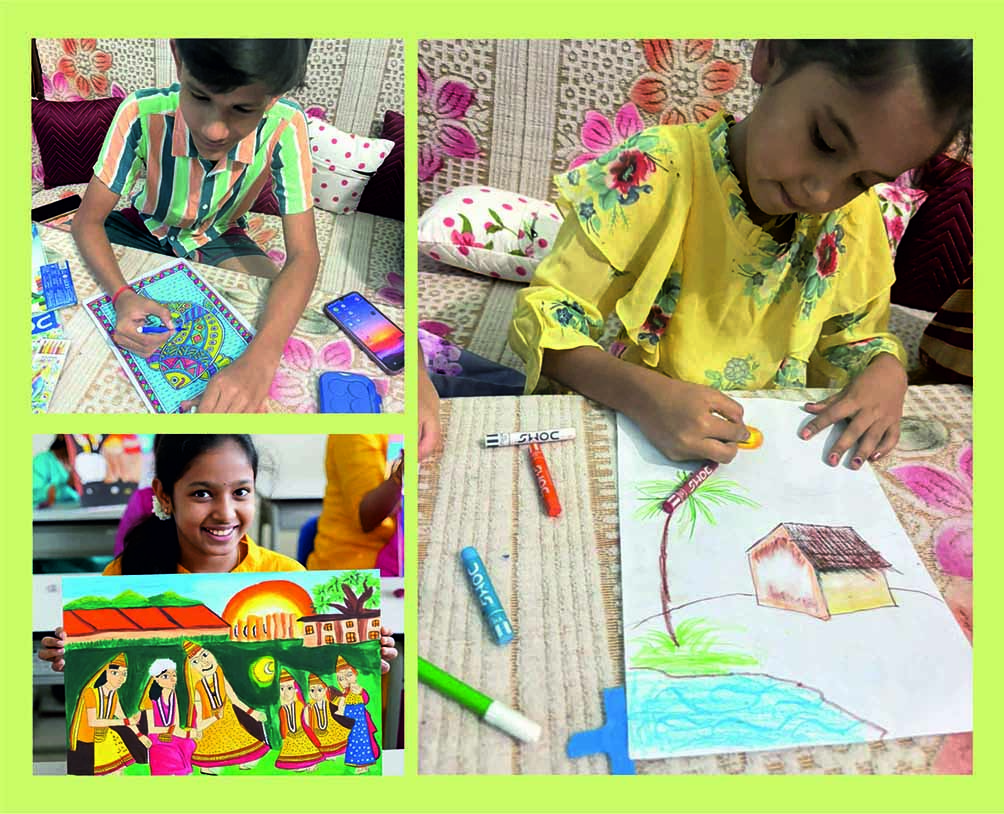 LUCKNOW (BNE)। कमला दयाल फाउंडेशन एवं कला निकेतन सोसयटी के सहयोग से कलाकथा लोककला ग्रीष्मकालीन 10 दिवसीय कला शिविर का आयोजन किया गया है। कला शिविर का उद्देश्य मधुबनी ,गोंड ,वर्ली ,चैक पुरना जैसी लोक कलाओं के द्वारा बच्चों को अपनी संस्कृति, परंपराओं और जीवन के बारे में जानने, कलात्मक कौशल विकसित करने और अपने समुदाय के बारे में एक गहरी समझ विकसित करना है। कला शिविर का आयोजन सेन्ट मैरी कन्वेंट स्कूल लखनऊ, डी0 पी0 कॉन्वेंट स्कूल एम0डी0 इंटर काॅलेज , में वर्कशाप कोअर्डिनेटर व विशिष्ट कला अध्यापको आरती वर्मा , प्रदीप ब्याहुत सुनील झा , दिलीप प्रधान के निर्देशन में किया जा रहा है। कार्यशला में मधुबनी, गोंड एवं उत्तर प्रदेश की लुप्त होती लोककला चौक पूरना के बारे में इनमें छुपी परम्परों , इनकी विशेषताओं से परिचित कराया गया