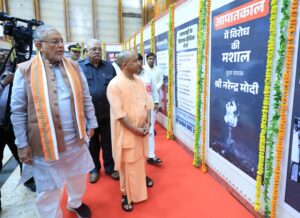 संगोष्ठी के शुभारम्भ से पूर्व सीएम योगी ने ‘आपातकाल की त्रासदी’ विषय पर आधारित एक प्रदर्शनी का उद्घाटन किया। प्रदर्शनी में समाचार पत्रों और पत्रिकाओं के कवर पेज एवं चित्रों के माध्यम से लोकतंत्र सेनानियों के संघर्ष और तत्कालीन इंदिरा गांधी सरकार द्वारा उन पर किए अत्याचारों को प्रदर्शित किया गया था, जिसका सीएम योगी ने अवलोकन किया।