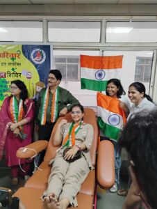 LUCKNOW (BNE) स्वतंत्रता दिवस  के उपलक्ष्य में एक हाथ तिरंगा एक हाथ रक्तदान के संकल्प के साथ  लखनऊ पुलिस मित्र परिवार टीम द्वारा किंग जॉर्ज चिकित्सा विश्वविद्यालय (KGMU) लखनऊ स्थित ब्लड बैंक में 11वां  बृहद स्वैच्छिक रक्तदान शिविर का  सफलतापूर्वक आयोजित किया गया।