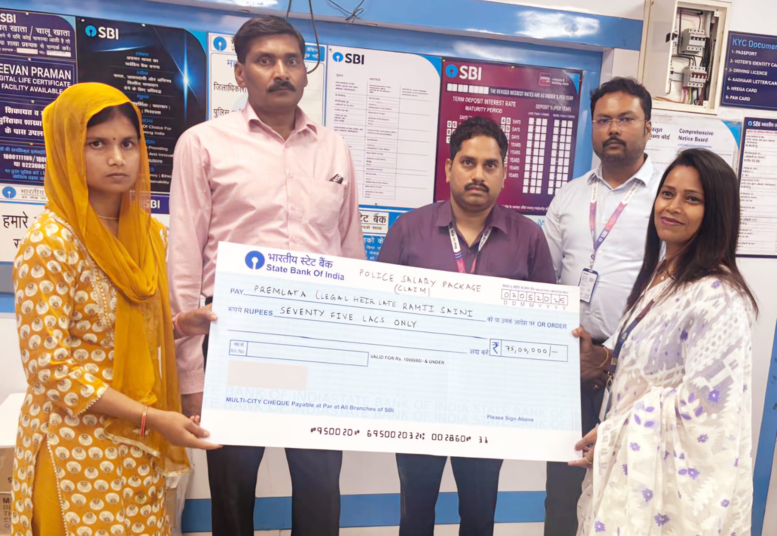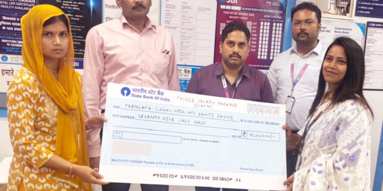LUCKNOW :स्टेट बैंक ने दिया मृतक खाताधारक की पत्नी को 75 लाख का चेक*