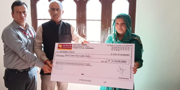 रक्षा कर्मियों के प्रति पीएनबी की प्रतिबद्धता के तहत शहीद के परिवार को ₹1.10 करोड़ का बीमा लाभ मिला