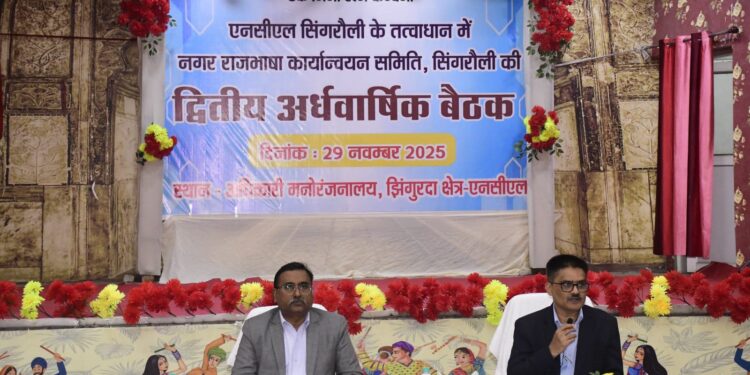 एनसीएल की झिंगुरदा परियोजना स्थित अधिकारी क्लब में गत शनिवार को नगर राजभाषा कार्यान्वयन समिति (नराकास), सिंगरौली की वर्ष 2025–26 की द्वितीय अर्धवार्षिक बैठक सफलतापूर्वक आयोजित की गई। बैठक की अध्यक्षता एनसीएल के अध्यक्ष-सह-प्रबंध निदेशक एवं अध्यक्ष, नराकास सिंगरौली, श्री बी. साईराम द्वारा की गई।