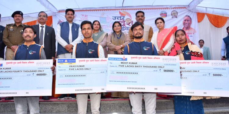इस अवसर पर मुख्य अतिथि/प्रभारी मंत्री रजनी तिवारी ने अपने संबोधन में कहा कि मुख्यमंत्री युवा उद्यमी विकास योजना का आज शुभारम्भ मुख्यमंत्री ने किया हैं। उन्होनें युवाओ को स्वरोजगार बनाने का अवसर प्रदान किया है। उन्होने कहा कि उत्तर प्रदेश को अलग पहचान दिलाने का कार्य मुख्यमंत्री योगी ने किया है। देश में विकास का ग्रोथ का इंजन उत्तर प्रदेश है। 5 ट्रिलियन इकाॅनामी बनाने की सबसे बड़ी भूमिका हमारे मुख्यमंत्री की है। प्रधानमंत्री का विजन है, उस विजन को कैसे आगे बढाया जाये, कैसे देश को विकसित किया जाये, उसको लेकर सबसे ज्यादा कार्य जो हो रहा है, हमारे उत्तर प्रदेश में हो रहा है। विकास हो या कानून व्यवस्था या फिर महिलाओ की स्वावलंबी बनाने, व युवाओ को रोजगार/स्वरोजगार देने, एवं किसानो को समृद्वि करने की दृृष्टि से आज उत्तर प्रदेश में विभिन्न प्रकार की योजनायें चलाई जा रही है। बहन/बेटियों को भयमुक्त वातावरण दिलाने का कार्य उत्तर प्रदेश सरकार ने किया है। देश के बाहर मोदी एंव उत्तर प्रदेश के बाहर योगी जी द्वारा किये जा रहे विकास कार्यों की चर्चा होती है। निजी स्कूलों वाली व्यवस्थायें सरकारी स्कूलो में दी जा रही हैं। हमारे मुख्यमंत्री एक अच्छी सोच के साथ विकास कार्य रहे हैं।जिलाधिकारी ने कहा कि मुख्यमंत्री युवा उद्यमी विकास योजना के अन्तर्गत युवाओं को लाभान्वित कर आत्मनिर्भर बनाया जायेगा। 75 युवाओं का ऋण स्वीकृत कर स्वरोजगार के अवसर उपलब्ध कराने का कार्य किया गया है। 21 से 40 वर्ष के युवा अधिक से अधिक आवेदन करें, हम उन्हें 05 लाख तक का ऋण मुक्त ब्याज दिलाने का कार्य करेंगे। लाभार्थियों को 10 प्रतिशत मार्जिन मनी का अनुदान भी मिलेगा।