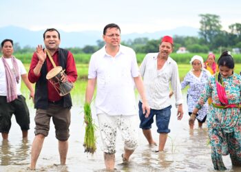 DEHRADUN-सीएम धामी ने खटीमा में की धान रोपाई, किसानों के श्रम को किया नमन