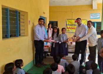 सोनभद्र-ग्रासिम द्वारा किया गया शिक्षण सामग्रियों का वितरण”