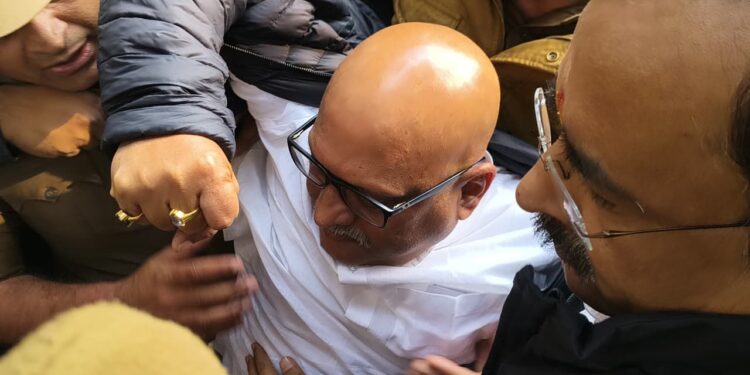इसी अनुक्रम में आज उत्तर प्रदेश की राजधानी लखनऊ में उत्तर प्रदेश कांग्रेस कमेटी के अध्यक्ष माननीय श्री अजय राय जी, पूर्व मंत्री के नेतृत्व में तथा जिला कांग्रेस कमेटी के अध्यक्ष श्री रूद्र दमन सिंह बबलू एवं शहर कांग्रेस के अध्यक्ष अमित श्रीवास्तव त्यागी के संयुक्त तत्वाधान में कांग्रेस कार्यकर्ताओं द्वारा विरोध प्रदर्शन किया गया। ज्ञातव्य हो कि आज अपरान्ह 1ः30 बजे प्रदेश कांग्रेस अध्यक्ष मा0 श्री अजय राय जी के नेतृत्व में कांग्रेसजन कांग्रेस मुख्यालय से कूच करते हुए भाजपा कार्यालय की ओर बढ़े मगर उ0प्र0 की योगी सरकार जो शांतिपूर्ण प्रदर्शनों से भी डरती है और हर लोकतांत्रिक आवाज को दबाने के लिए पुलिस बल का प्रयोग करती है, उसने आज एक बार फिर वही पुराना रवैया अपनाया। भाजपा सरकार की बदनीयती और संवैधानिक संस्थाओं के दुरूपयोग के विरोध में प्रदर्शन कर कांग्रेसजनों के साथ बल का प्रयोग किया गया एवं उन्हें बीच रास्ते से गिरफ्तार कर अस्थाई जेल ईको गार्डेन ले जाया गया।