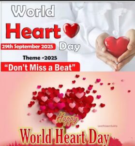 विश्व हृदय दिवस 2025-हृदय स्वास्थ्य एक वैश्विक समस्या- “सावधानी बरतें जीवन बचाएं”- “एक धड़कन न चूकें”